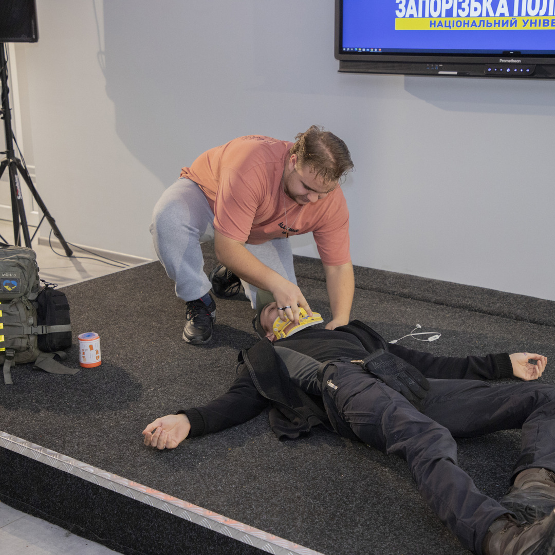 Протягом тренінгу студенти активно брали участь у відпрацюванні технік надання першої допомоги — панувала атмосфера зосередженості. Тепер наша молодь знає, як діяти, коли важлива кожна секунда.
