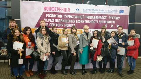 Студенти кафедри маркетингу та логістики ЗНТУ на чолі з завідуючою кафедрою д.е.н., професором Лифар В.В., разом з доцентом кафедри Антонюк К.І. відвідали та взяли активну участь у конференції «Розвиток туристичної привабливості регіону через підвищення ефективності діяльності МСБ сектору HoReCa», яка відбулася 5-6 грудня 2017 р. у виставковому центрі «Козак-палац». Високий рівень конференції, організованої Запорізькою торгово-промисловою палатою, за підтримки ЄБРР, відзначили провідні фахівці, практики та представники органів влади та місцевого самоврядування.