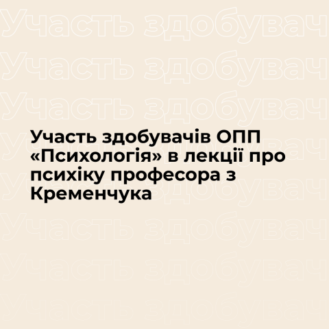 Кафедра психології висловлює щиру вдячність шановним колегам кафедри психології, педагогіки та філософії Кременчуцького національного університету імені Михайла Остроградського, зокрема лектору Олегу Соловйову та завідувачці кафедри Ользі Літвіновій, за можливість долучитися до цієї лекції та поглиблення знань наших здобувачів і розширення уявлень про наукові підходи щодо вивчення психіки! Дякуємо за співпрацю!