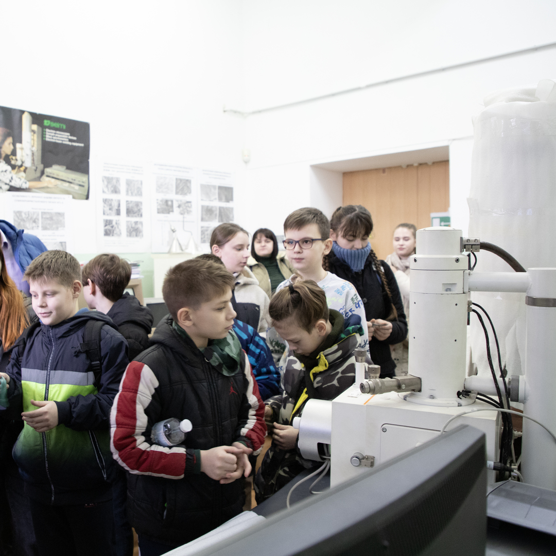 Після цього п'ятикласників зустріла кафедра фізичного матеріалознавства і провела заняття з 3D-моделювання. Школярам продемонстрували принцип дії ЗD-принтеру і надрукували героїв із «Minecraft», яких розіграли наприкінці заняття. Діти роздивились зразки різних металів та спробували відгадати назву. Після цього гості дізналися дивовижні факти та історії про відкриття і використання металів. Наприкінці зустрічі учні подивилися вглиб речей за допомогою растрового мікроскопа.