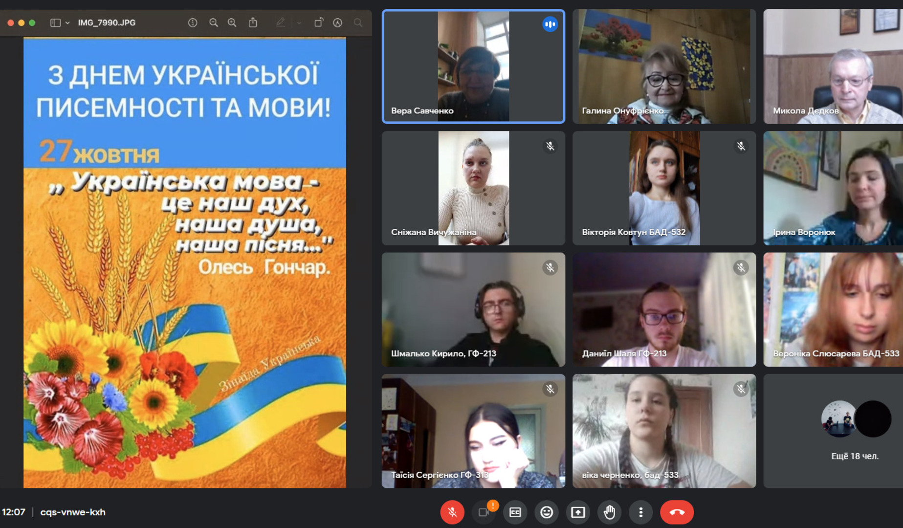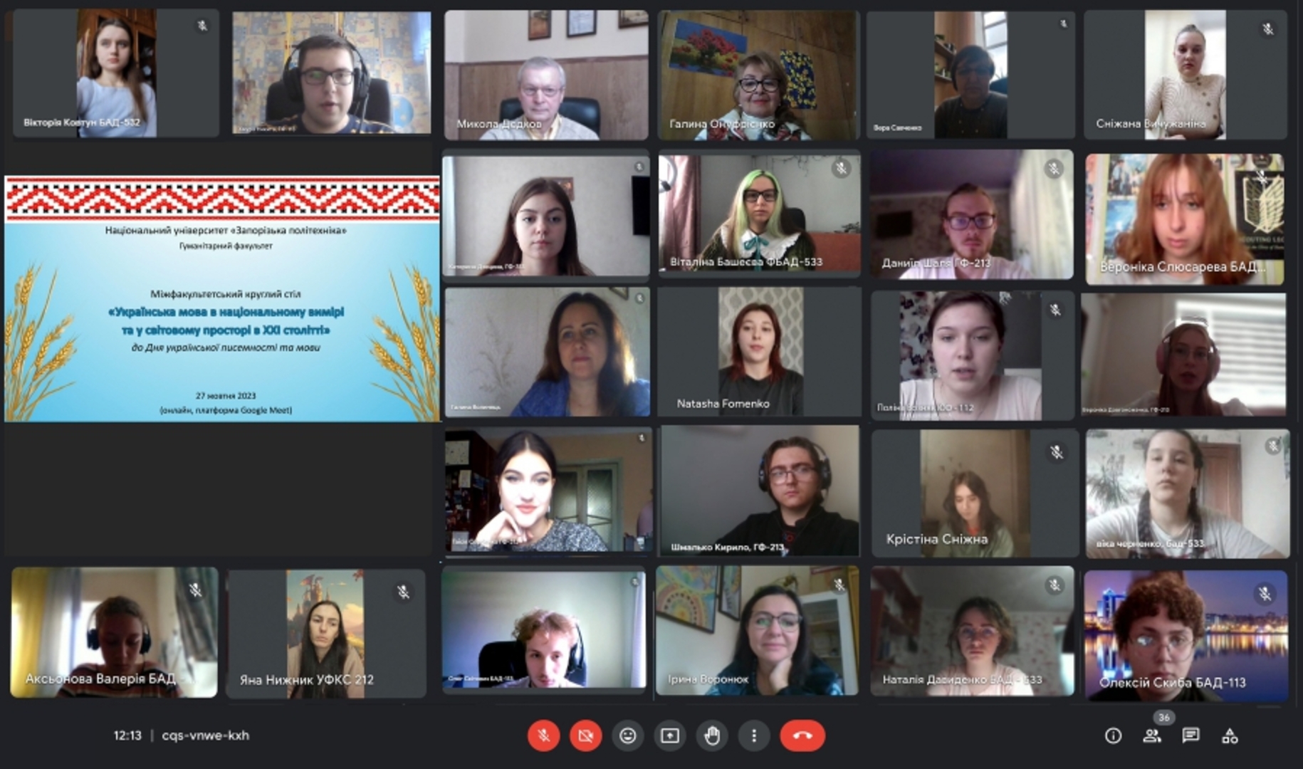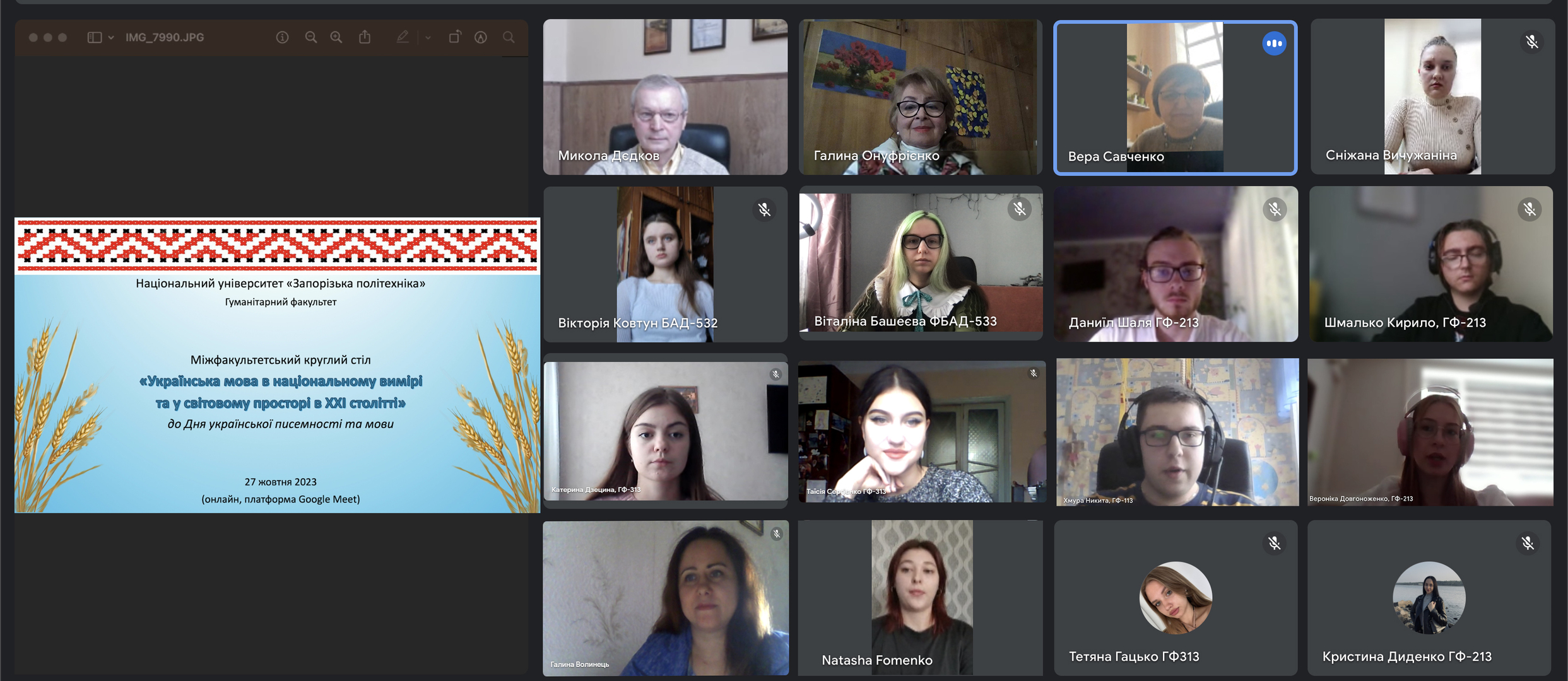 До Дня української писемності та мови, 27 жовтня, на базі гуманітарного факультету Запорізької політехніки був урочисто проведений круглий стіл наукової проблематики «Українська мова в національному вимірі та у світовому просторі в XXI столітті». Учасників привітав проректор з наукової роботи Вадим Шаломєєв, декан гуманітарного факультету Микола Дєдков, декан факультету будівництва, архітектури та дизайну Віра Савченко, керівниця відділу наукової роботи студентів Сніжана Вичужаніна і модераторка святкового заходу — доцентка кафедри українознавства та загальної мовної підготовки Галина Онуфрієнко.