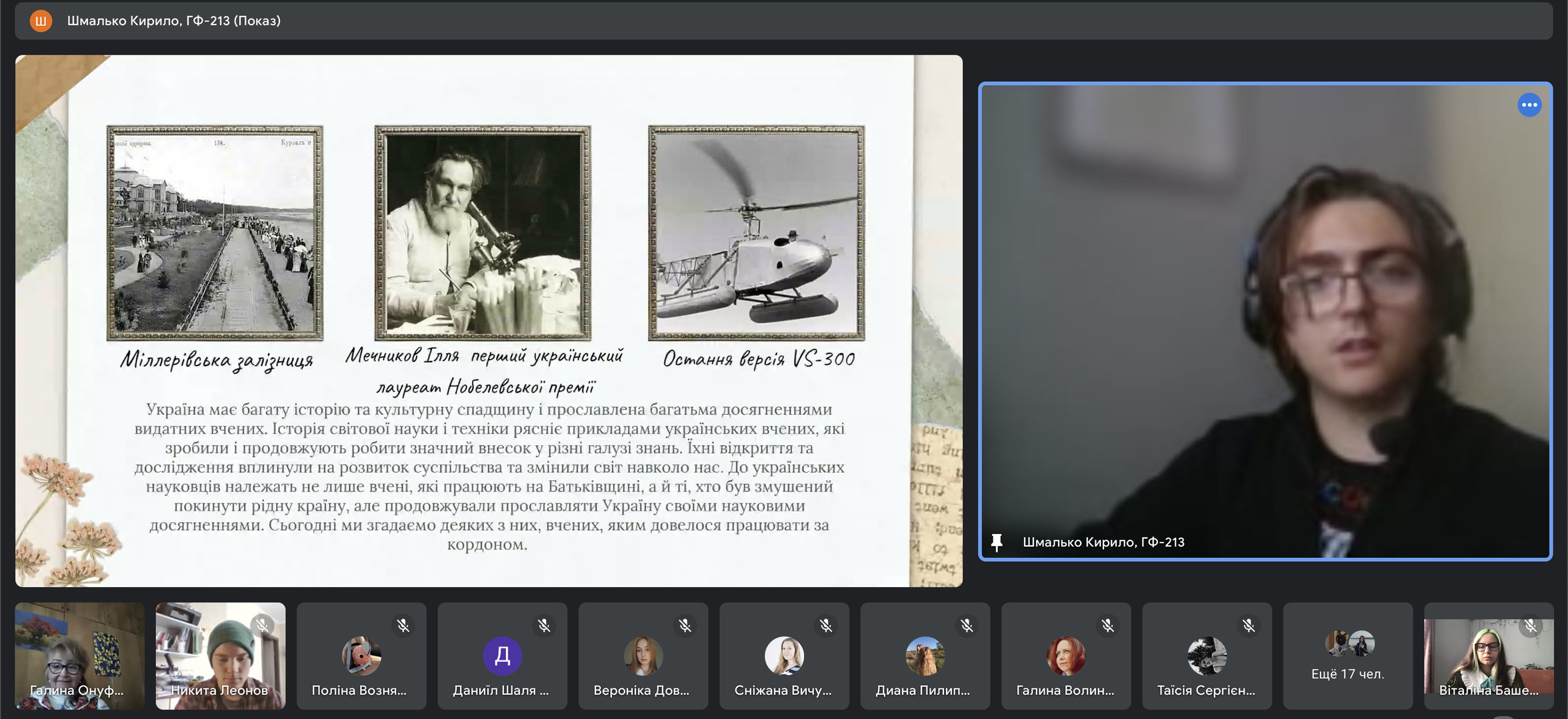 Даниїл Шаля, ГФ-213: «У моєму житті був перший виступ з презентацією на круглому столі до Дня української писемності та мови. Я радий тому, що зміг отримати такий корисний досвід.
