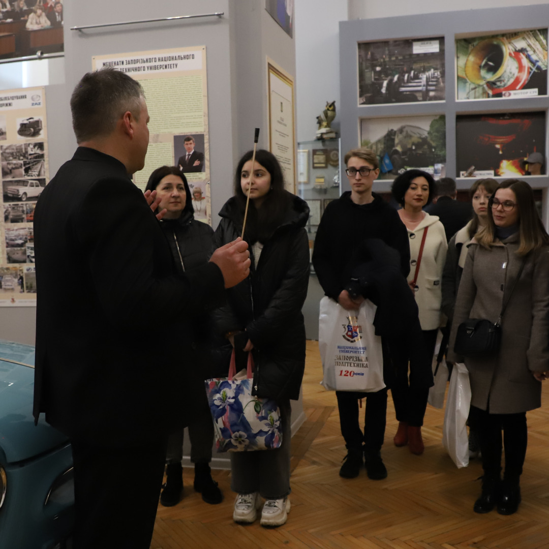 Після урочистого вручення сертифікатів гості Запорізької політехніки відвідали Музей історії технічного прогресу. У лабораторії кафедри «Електропривод та автоматизація промислових установок» подивились на моделі дронів, установки з автоматизації промислових процесів. На кафедрі «Програмні засоби» відвідали лабораторію «Вбудованих систем та віддаленої інженерії», а на кафедрі «Технологія авіаційних двигунів» побачили справжні авіадвигуни.