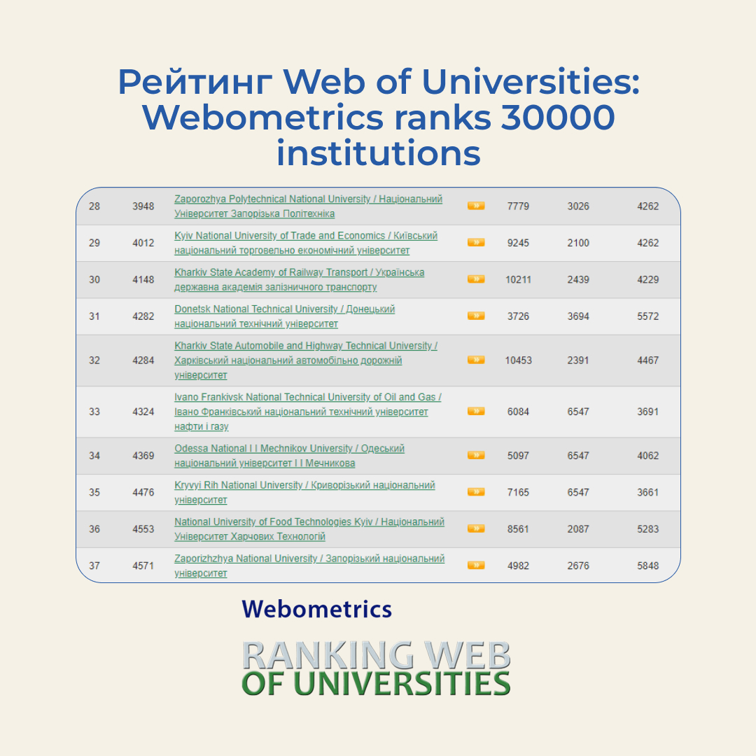 Традиційно у січні публікується оновлений рейтинг Webometrics Ranking of World Universities.
