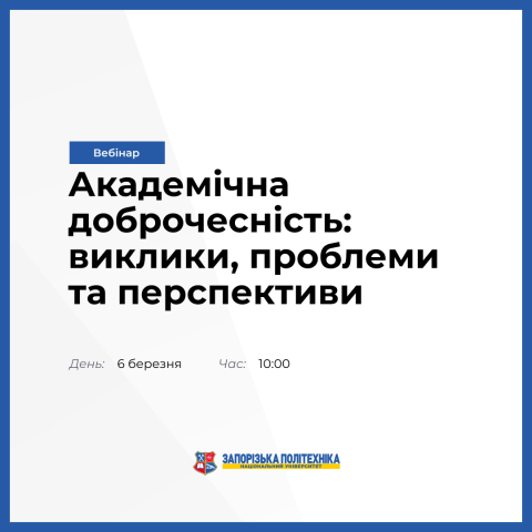 Запорізька політехніка запрошує всіх охочих взяти участь в онлайн-вебінарі «Академічна доброчесність: виклики, проблеми та перспективи».