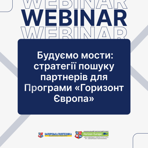 Запорізька політехніка запрошує на вебінар «Будуємо мости: стратегії пошуку партнерів для Програми “Горизонт Європа”»!