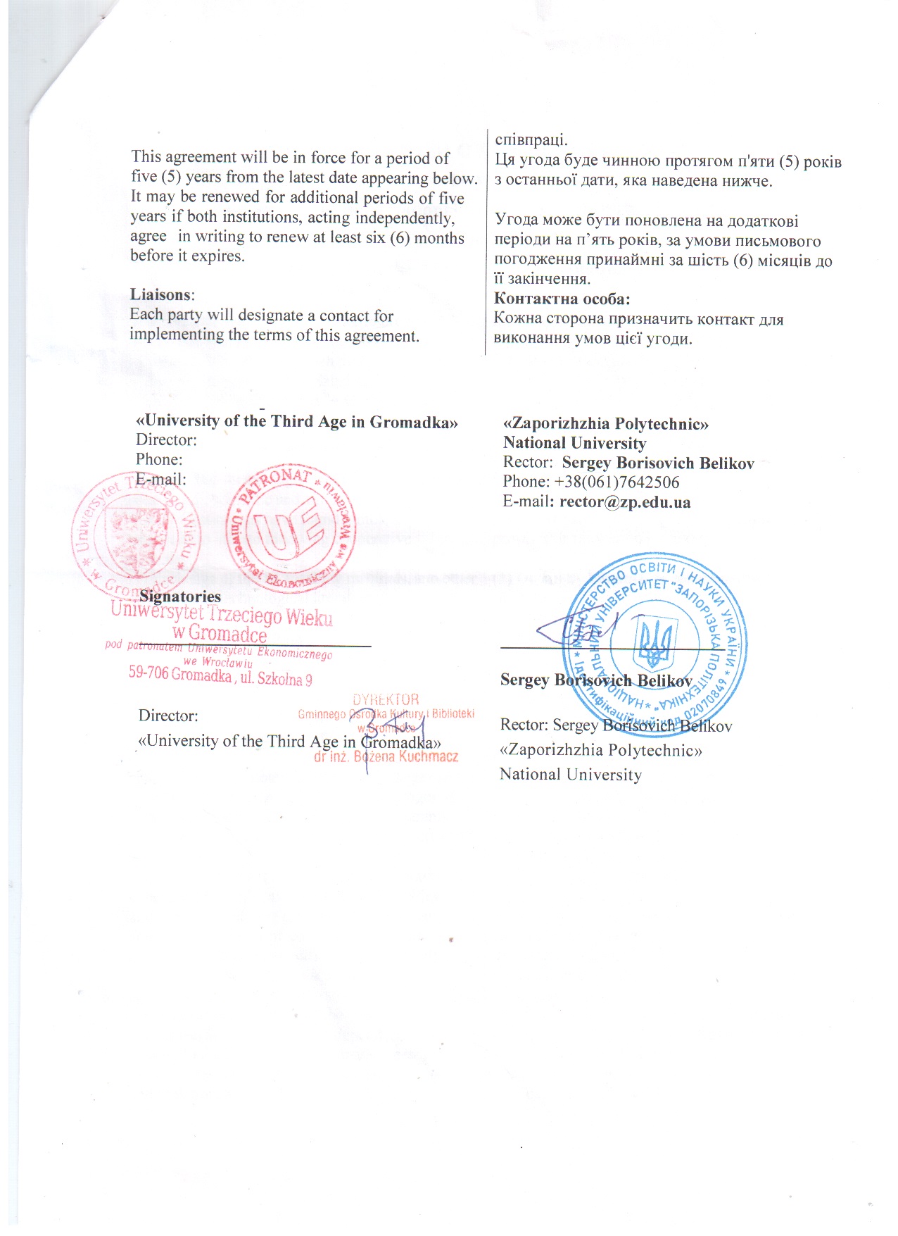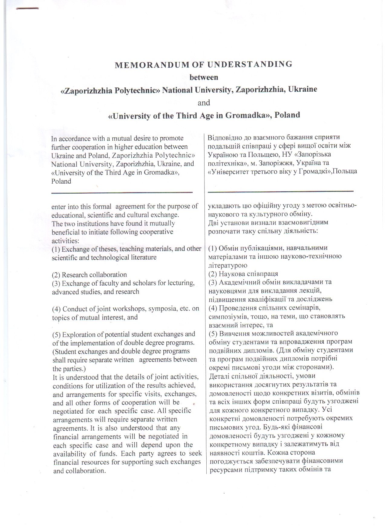 Меморандум про співпрацю: «University of the Third Age in Gromadka», Poland