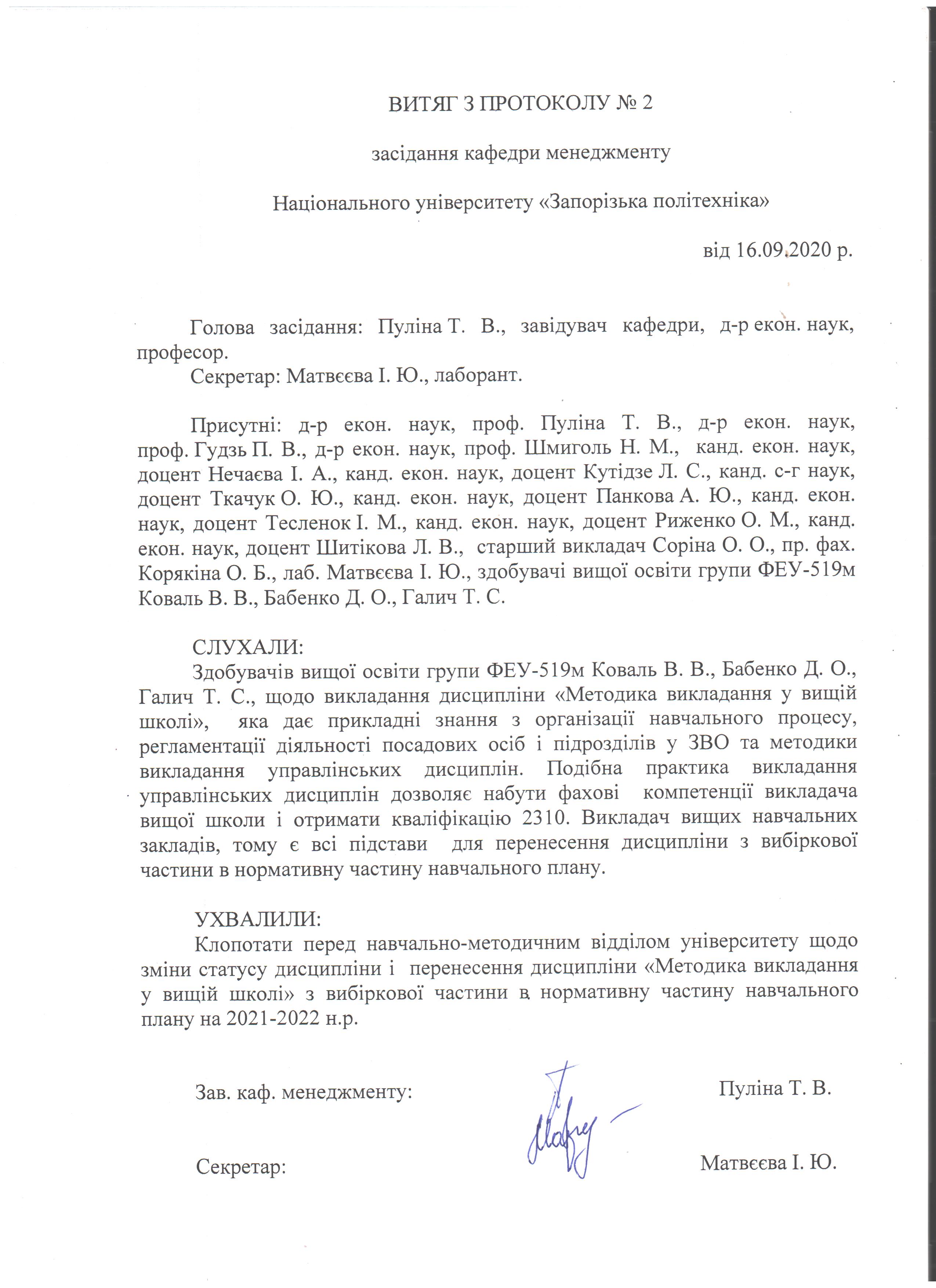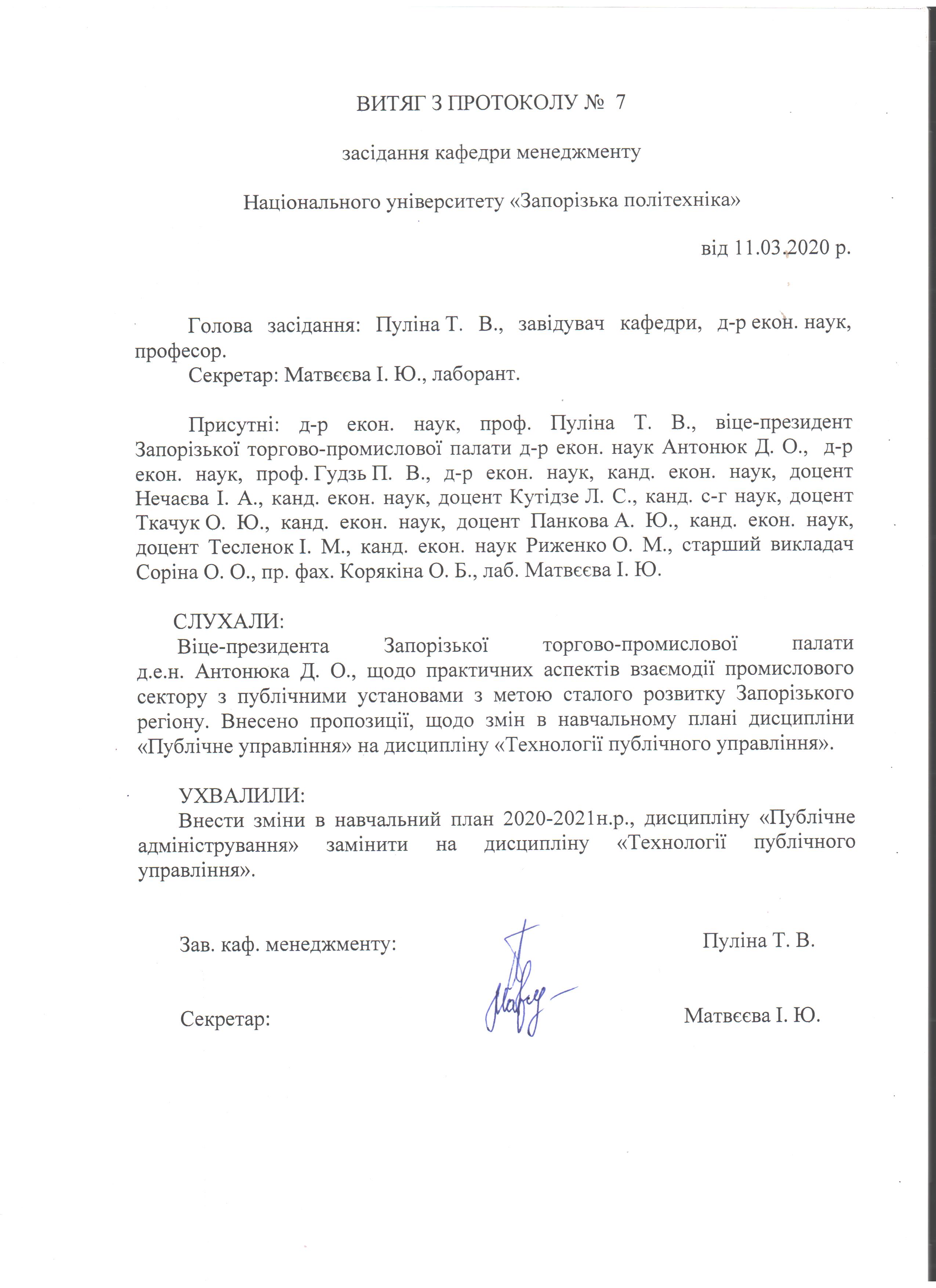 Акредитація освітньо-професійної програми "Менеджмент організацій та адміністрування" спеціальності 073 «Менеджмент», освітнього ступіня «магістр», 2019 рік
