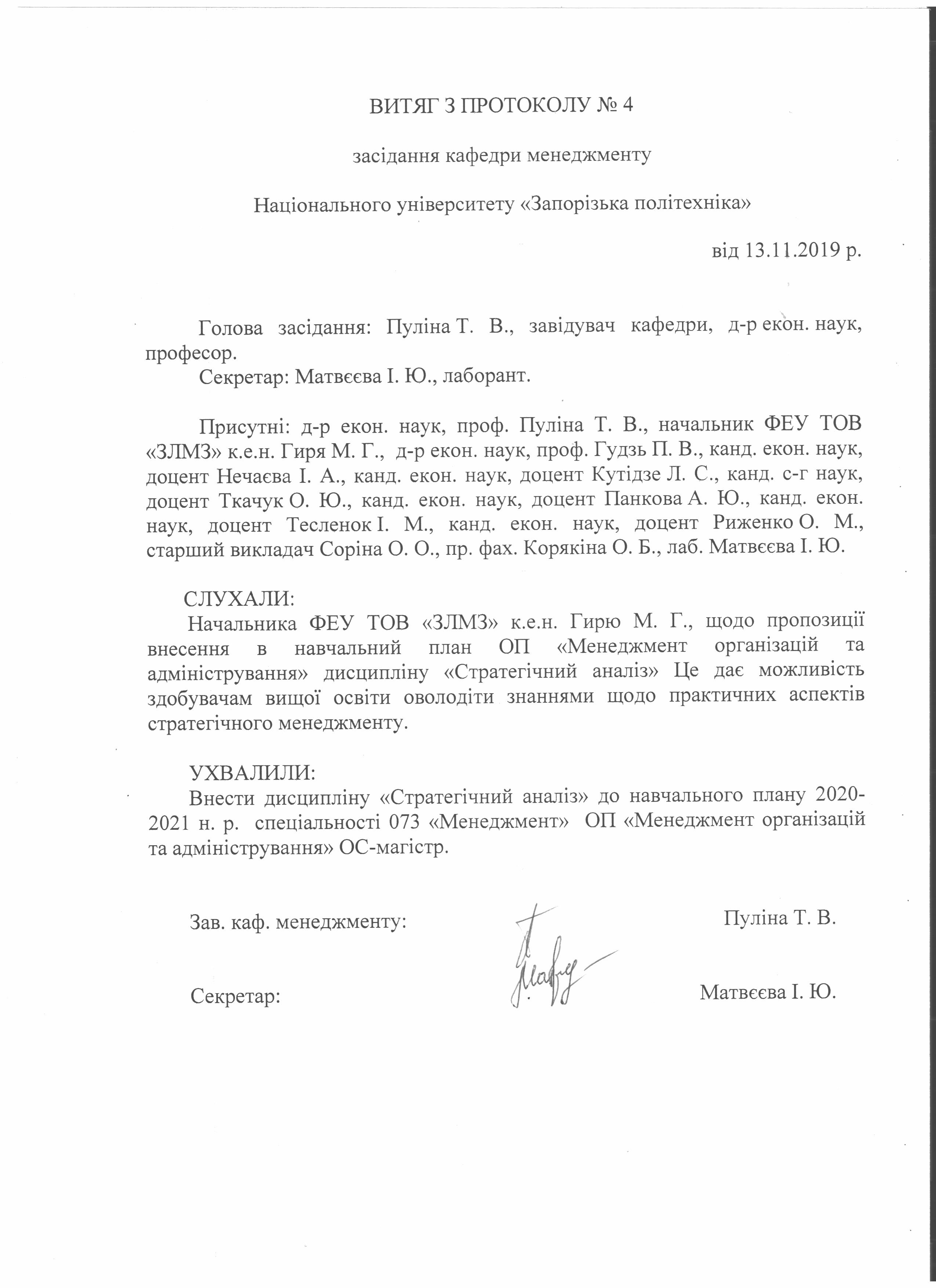 Рецензія-відгук на ОПП «Менеджмент організацій та адміністрування» зі спеціальності 073 «Менеджмент»: ТОВ «ЗЛМЗ»