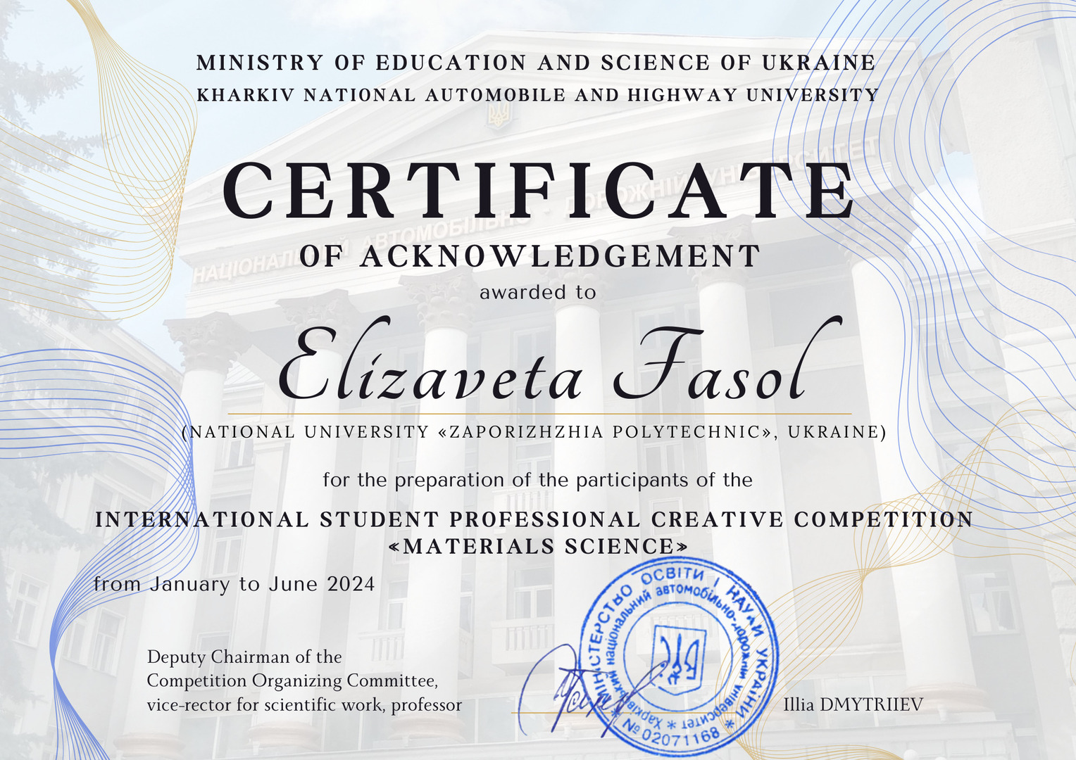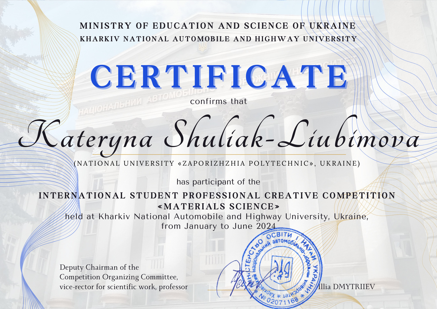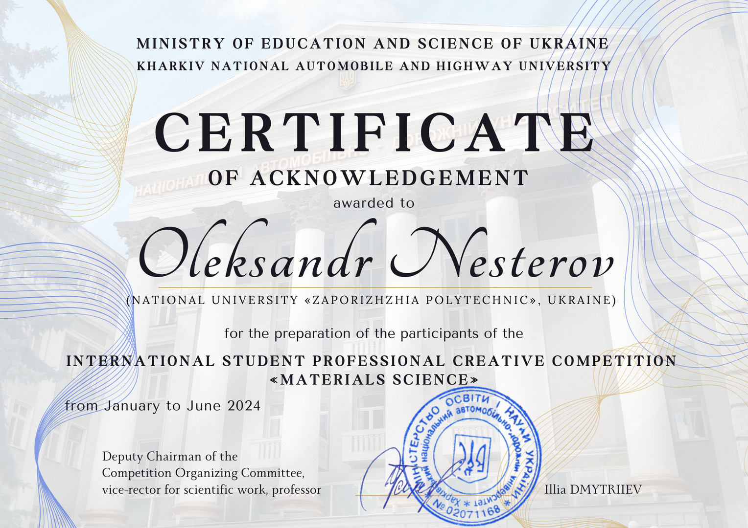 У січні-червні 2024 року на базі Харківського національного автомобільно-дорожнього університету відбувся Міжнародний студентський професійний творчий конкурс «Матеріалознавство».