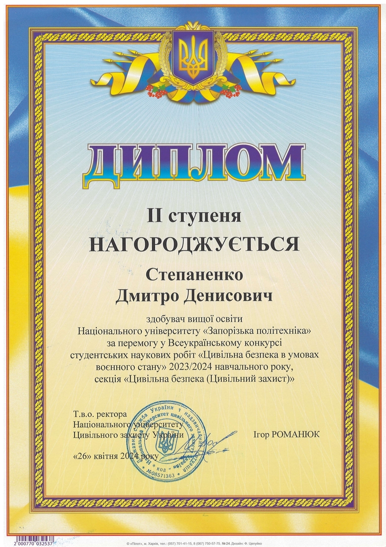 У лютому-квітні 2024 року на базі Національного університету цивільного захисту України у Харкові був проведений Всеукраїнський конкурс студентських наукових робіт «Цивільна безпека в умовах воєнного стану».
