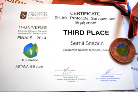 У червні 2014 року студент ЗНТУ – Шадрін Сергій Ігорович (факультет радіоелектроніки та телекомунікацій, кафедра радіотехніки та телекомунікацій) – неодноразовий лауреат олімпіади «ІТ-ПЛАНЕТА», взяв участь у фіналі Міжнародної студентської олімпіади з інформаційних технологій «IT-UNIVERSE 2013/2014», який проходив у столиці Республіки Казахстан – Астані на базі Назарбаєв Університету. Студент посів ІІІ місце.