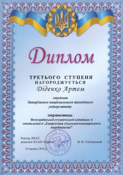 Диплом першого ступеня – Михайло Сподоба, студент Національного університету біоресурсів і природокористування України;