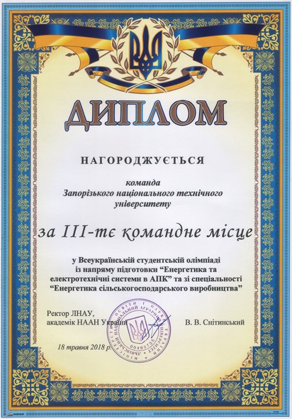 - Зі спеціальності «Енергетика сільськогосподарського виробництва»: