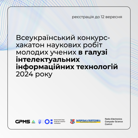 Запорізька політехніка за підтримки компанії GPMS Inc. (Корнуел, США) розпочинає приймання заявок на участь у першому Всеукраїнському конкурсі-хакатоні наукових робіт молодих учених у галузі інтелектуальних інформаційних технологій.
