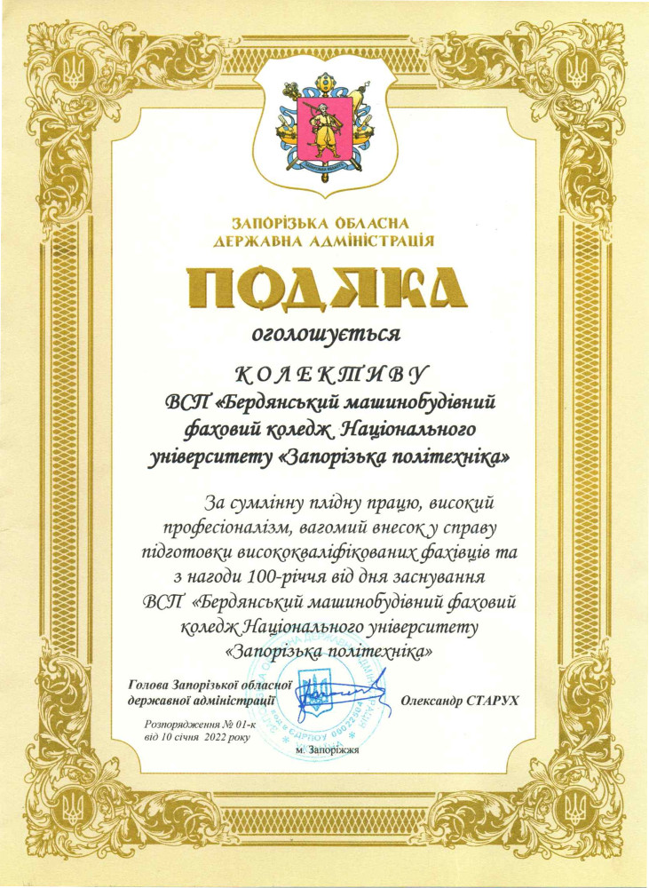 Відокремлений структурний підрозділ «Бердянський машинобудівний фаховий коледж