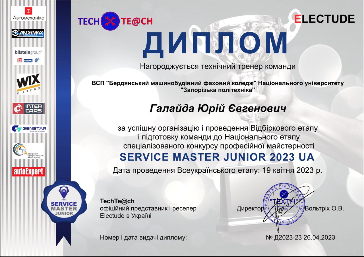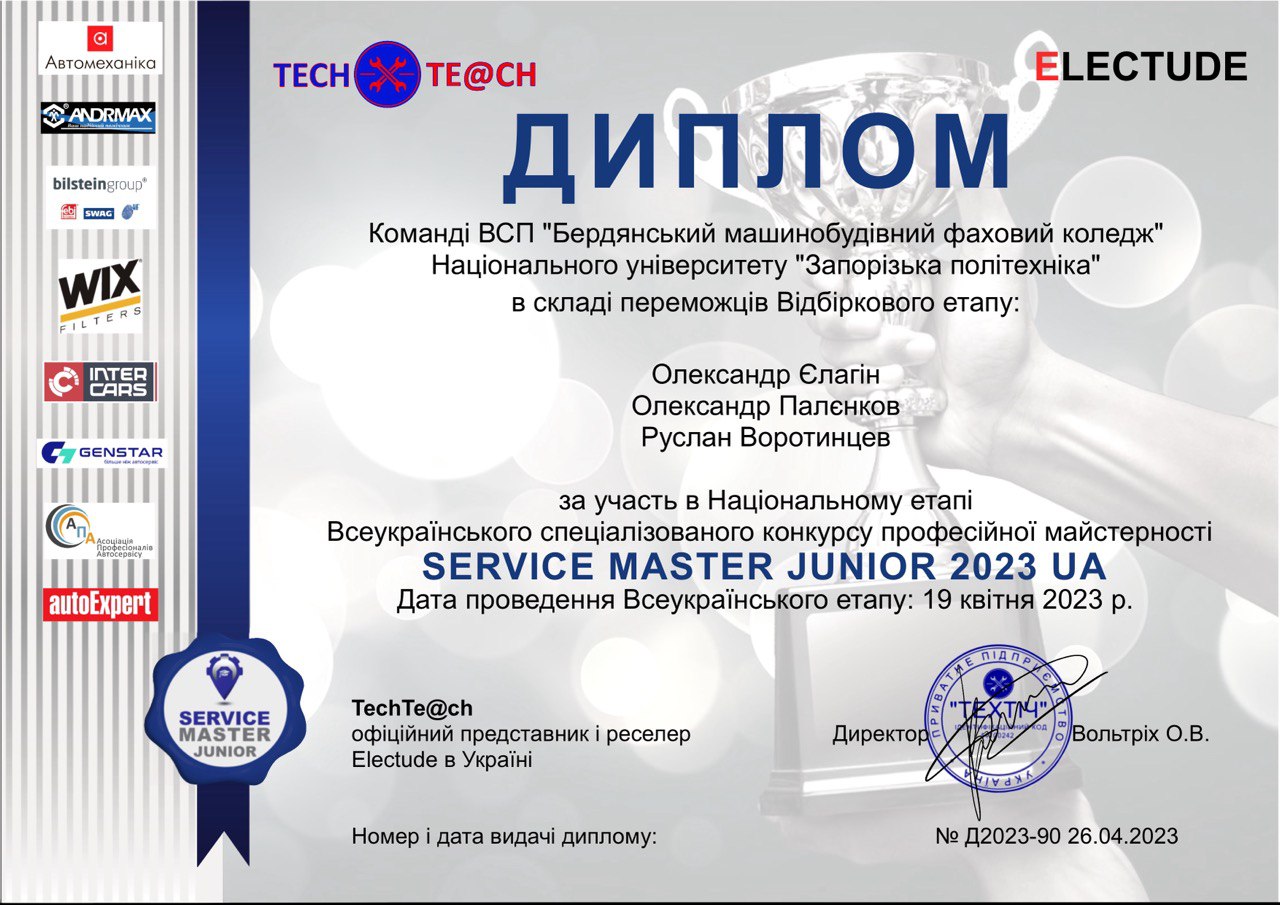 Наші студенти випускної групи спеціальності 274 Автомобільний транспорт, ОП «Обслуговування та ремонт автомобілів і двигунів» взяли участь у Національному етапі Всеукраїнського спеціалізованого конкурсу професійної майстерності та увійшли до складу переможців відбіркового етапу. Вітаємо Олександра Палєнкова, Олександра Єлагіна та Руслана Воротинцева. Особлива подяка голові випускової циклової комісії Юрію Галайді за організацію роботи викладачів комісії та підготовку студентів до конкурсу.