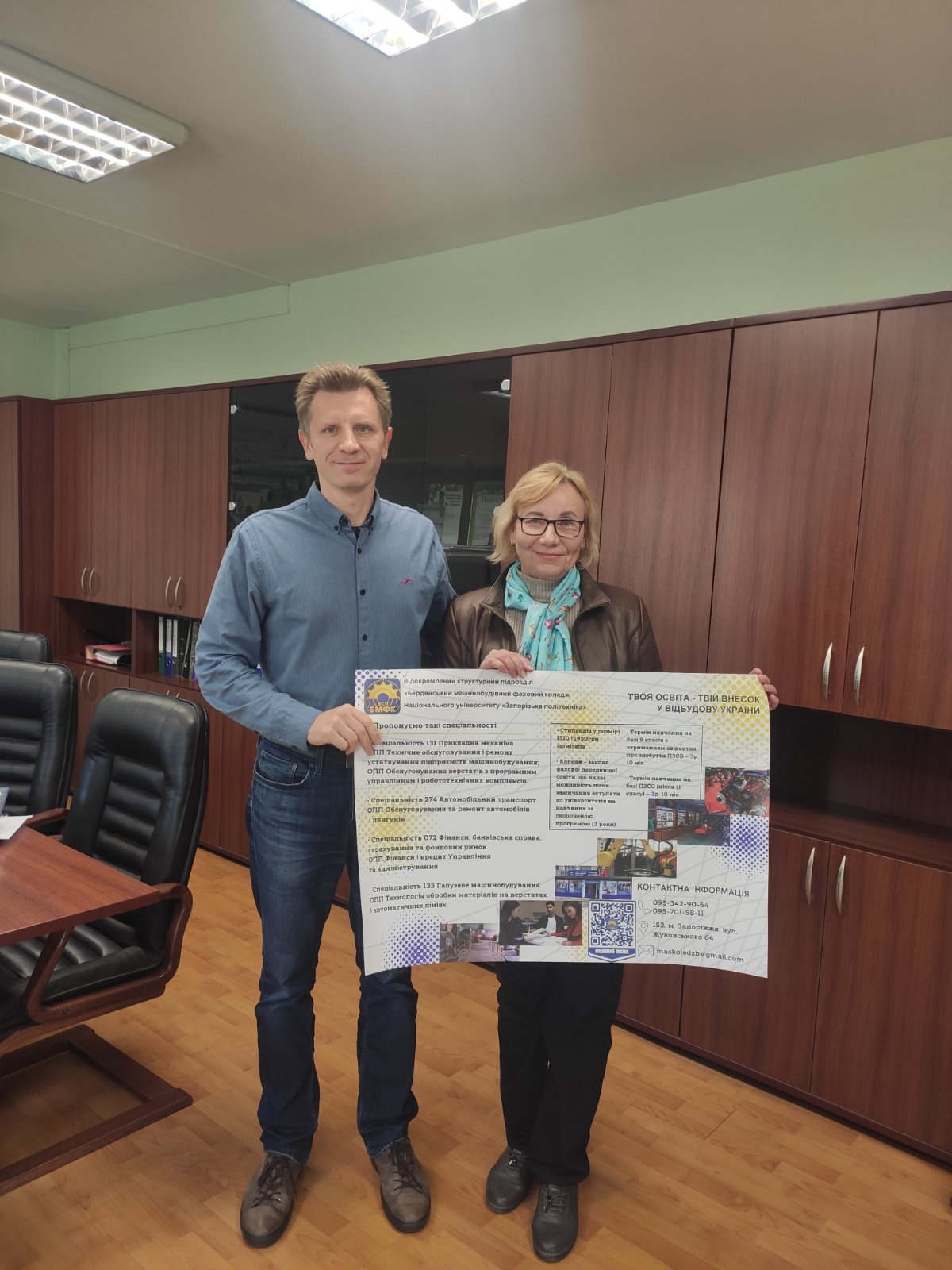 Сьогодні, 31.10.2023 року, відбулась зустріч в.о. директора та керівника підрозділу сприяння працевлаштування випускників ВСП «Бердянський машинобудівний фаховий коледж Національного університету «Запорізька політехніка» з представниками ПАТ «Запоріжсталь». Зокрема під час зустрічі з керівництвом управління з підбору, комплектування та розвитку персоналу ПАТ «Запоріжсталь» були визначені шляхи подальшої співпраці щодо організації освітнього процесу та підготовки майбутніх фахівців. Тож війна не стане на заваді співпраці коледжу з роботодавцями на терені підготовки кадрів для відбудови нашої країни.