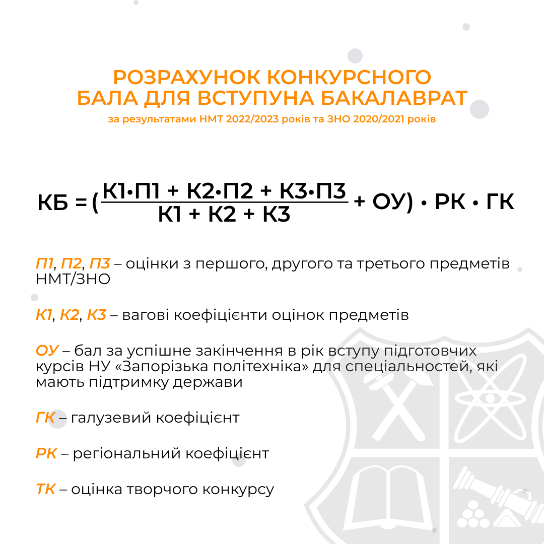 Гортай інструкцію, щоб дізнатись формулу розрахунку конкурсного бала та її складові.