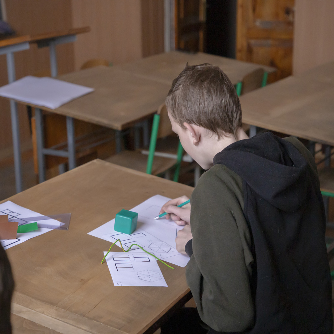 Учні відчули себе справжніми інженерами-проєктувальниками: здобули перші навички читання креслень деталей у трьох видах, познайомились з поняттям просторової орієнтації, а також спробували побудувати об'ємну фігуру навколо куба за допомогою дроту, маючи креслення трьох видів.