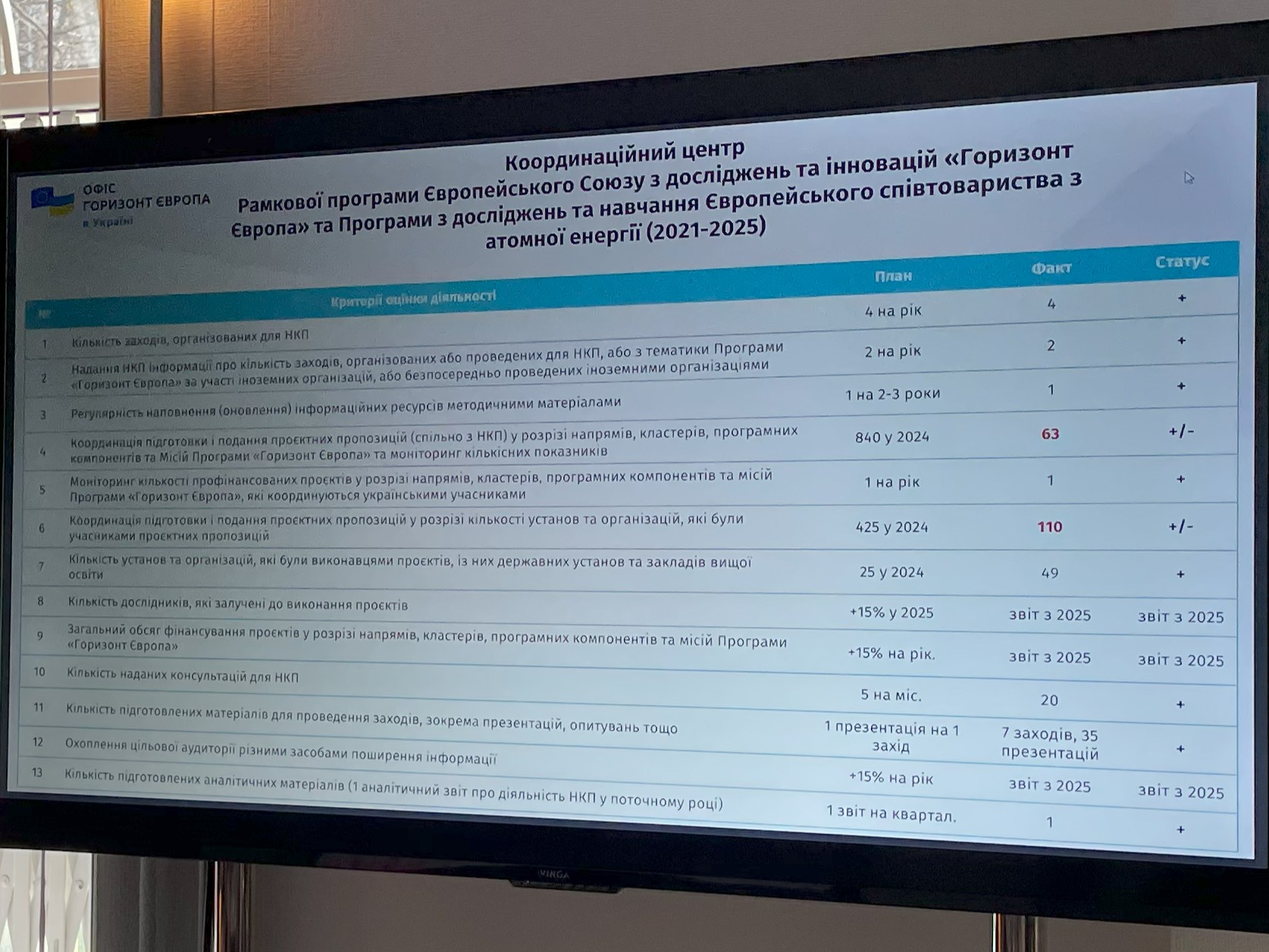 У межах круглого столу було представлено аналітичний звіт про результати діяльності НКП та Координаційного центру, який презентував Ігор Таранов — керівник Офісу «Горизонт Європа» в Україні та координатор мережі НКП. Особливо приємно, що діяльність НКП «Дослідницькі інфраструктури» отримала позитивну оцінку, попри складність напряму, який вважається одним із найвибагливіших у межах програми «Горизонт Європа».