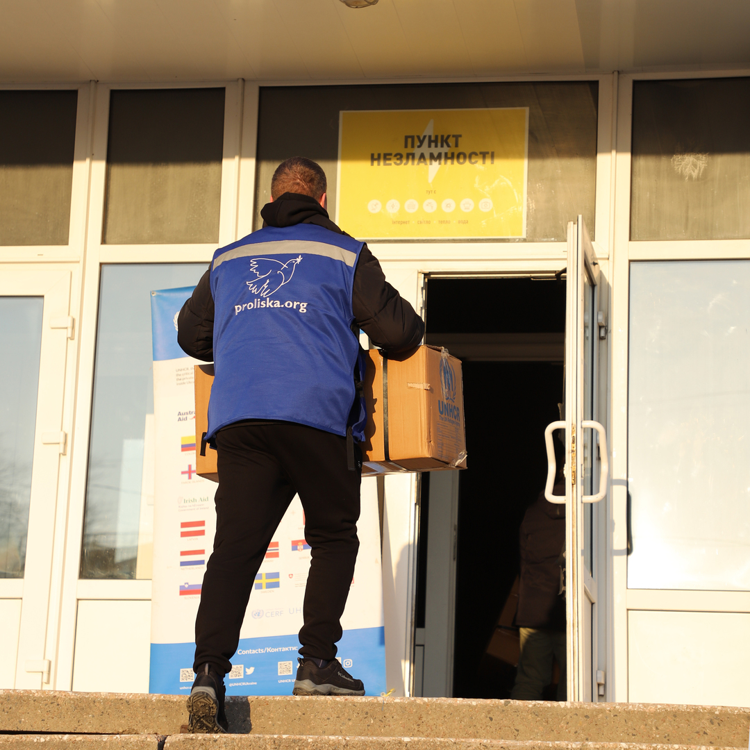 Громадська організація «Проліска» надала гуманітарну допомогу для облаштування тимчасових укриттів на базі Запорізької політехніки, зокрема: спальні мішки, матраци, сонячні лампи, набори посуду та каністри.