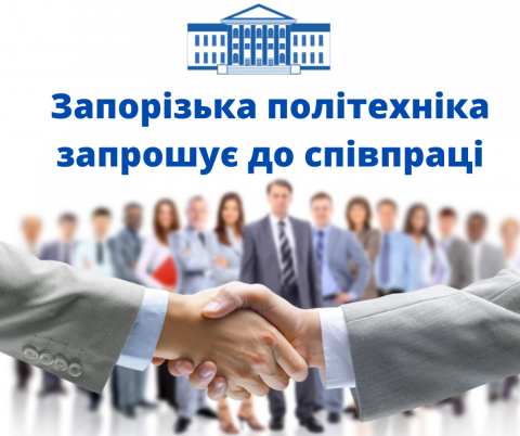 Національний університет «Запорізька політехніка» запрошує до співпраці у сферах науково-дослідної роботи, дуальної освіти, працевлаштування, стажування, проходження практики здобувачів вищої освіти, навчально-методичної, організаційної, культурної, виховної та інших сфер діяльності в межах здійснення навчального та наукового процесу роботодавців/стейкхолдерів, заклади повної загальної середньої освіти, заклади фахової передвищої освіти, заклади вищої освіти, громадські організації/фонди, органи державної влади та місцевого самоврядування, наукові установи України та світу!