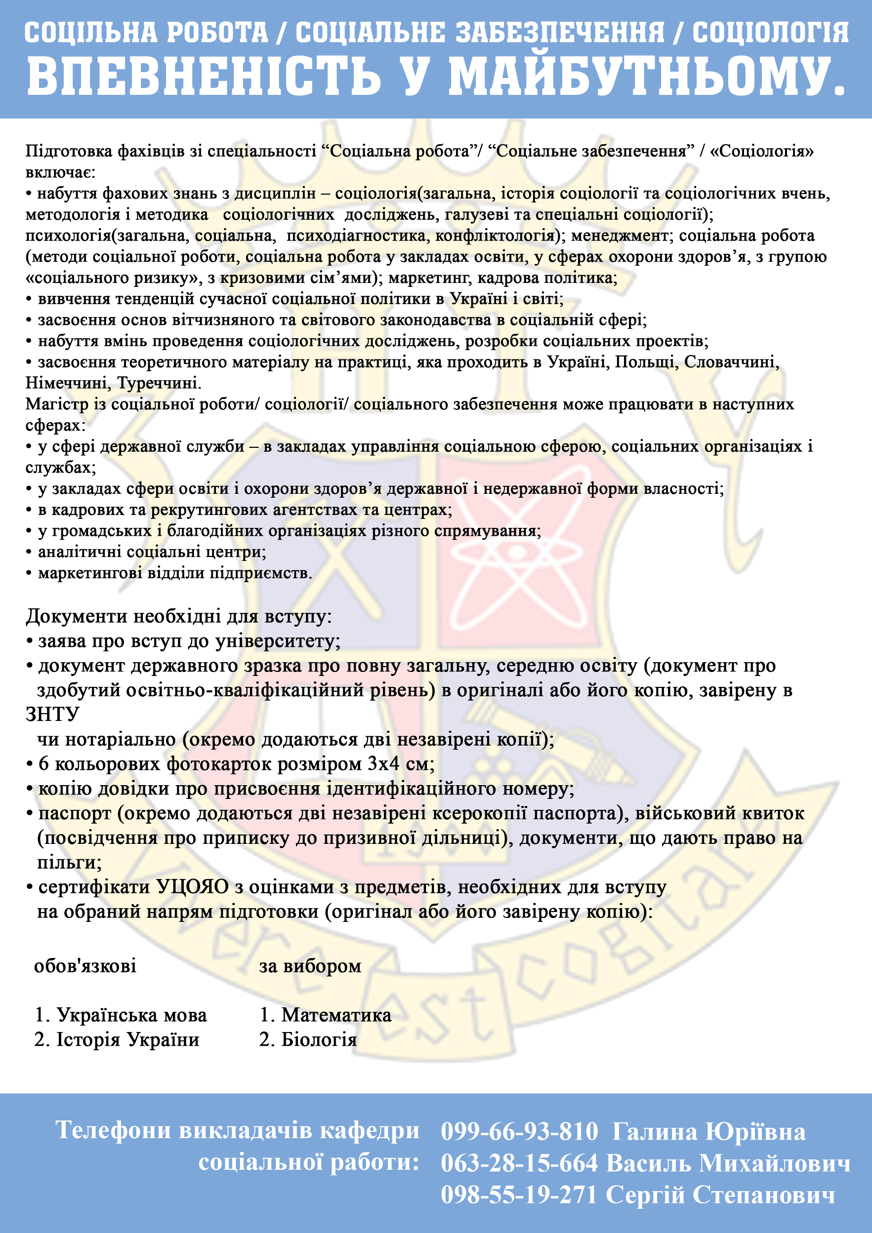 Телефони викладачів кафедри соціальної роботи ЗНТУ: