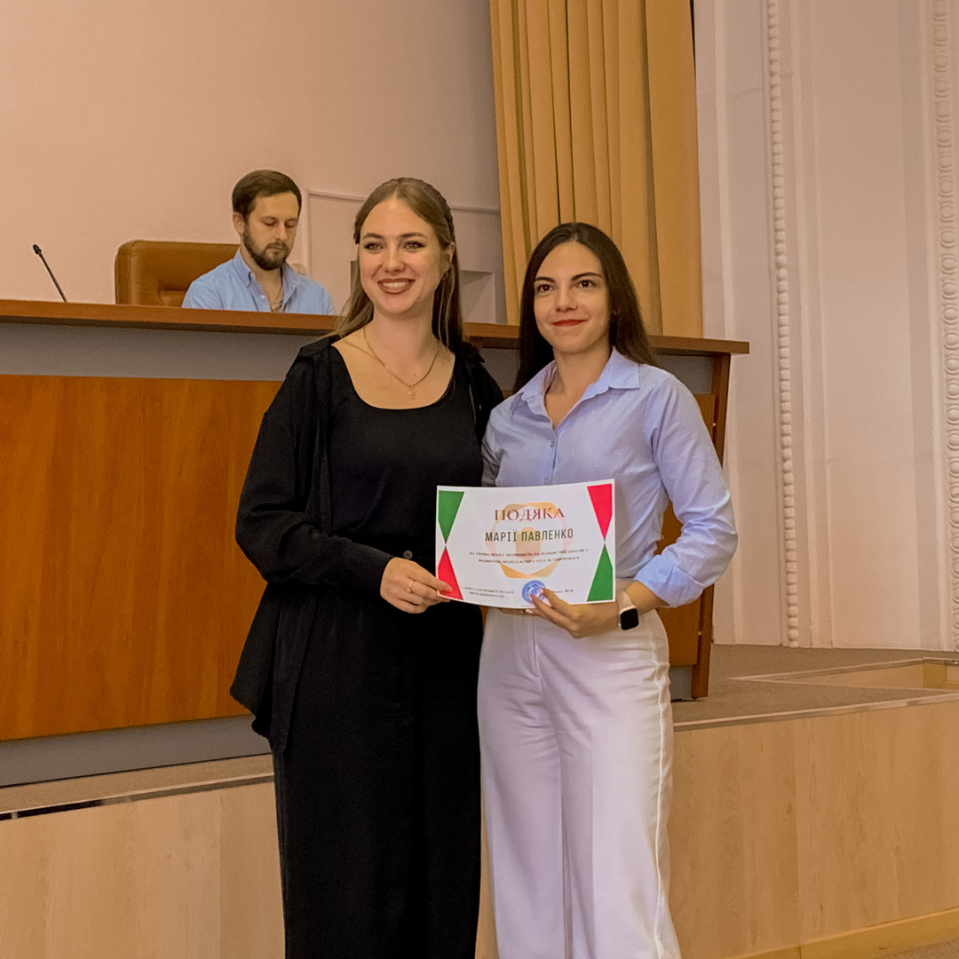 Серед них і наші студенти. Голова студентського самоврядування Марія Павленко отримала подяку за громадську активність та особистісний внесок у розвиток молодіжного руху м. Запоріжжя.