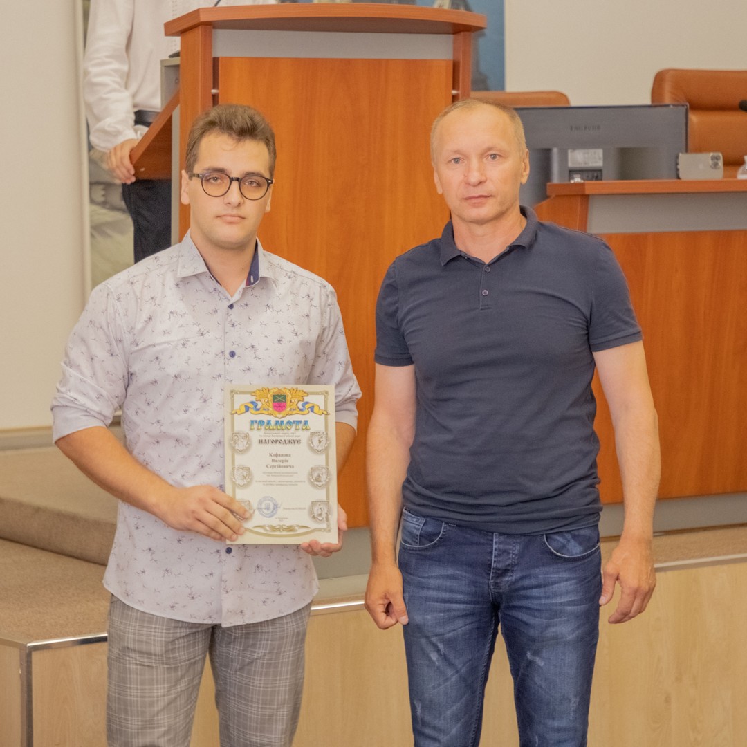 Голову профбюро студентів інженерно-фізичного факультету Софію Степаненко та директора центру студентського самоврядування гуртожитку №4 Валерія Кофанова було нагороджено грамотами за вагомий внесок у волонтерську діяльність та активну громадську позицію. Ці студенти успішно реалізують студентські ініціативи у нашому університеті, зокрема займаються організацією традиційних університетських спортивних заходів і змагань.