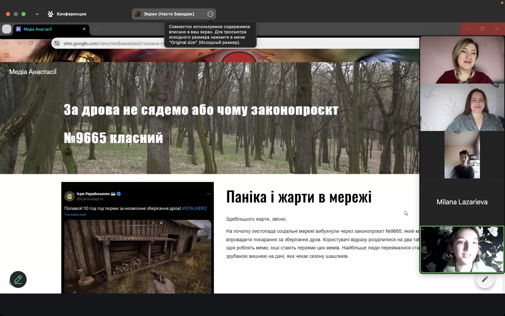 Анастасія Семенюк, Анастасія Заводюк — «За дрова не сядемо або чому законопроєкт №9665 класний»