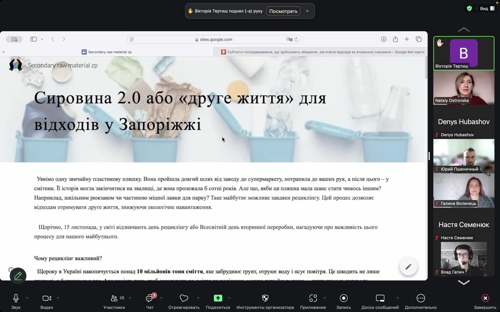 Вікторія Тертиш, Анастасія Сардак — «Сировина 2.0 або "друге життя" для відходів у Запоріжжі»