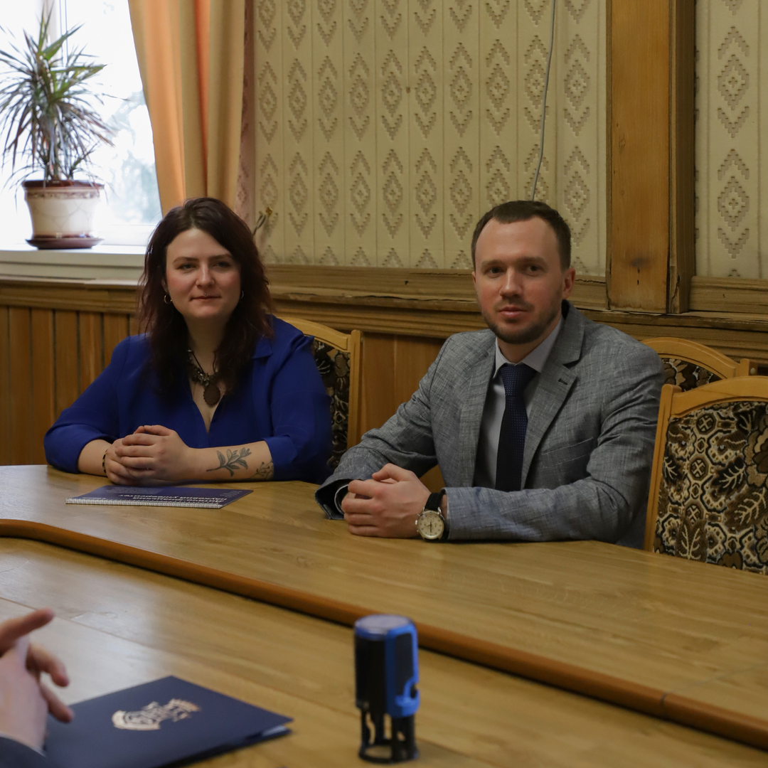 Представники НУ «Запорізька політехніка» на чолі з ректором Віктором Грештою зустрілися з виконавчим директором громадської організації «Молодь онлайн» Данилом Сирих та її освітньою менеджеркою Анастасією Торянік.