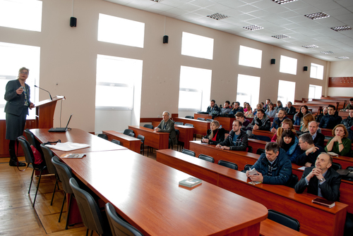 Для студентів та викладачів ЗНТУ пані Гізела Ціммерманн зробила презентацію численних стипендіальних програм DAAD «Навчання та дослідження у Німеччині» та відповіла на запитання присутніх.